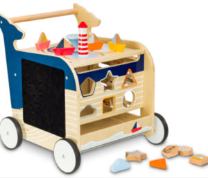 Ein weiterer heißer Anwärter auf das begehrte Siegel ist der „Lauflernwagen Wal“ von Legler. Die simple Neuinterpretation des altbekannten Lauflernwagens – kombiniert mit Spielfunktionen wie Steckspiel und Seitenklappen, sowie dem ästhetischen Design aus hochwertigem Holz – begeisterte sogar die unparteiische Jury.