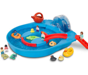 Chancen auf den Sieg im Bereich Baby & Infant hatte beispielsweise die Wasserspielwelt „PLAYMOBIL® 1.2.3 Aqua“ aus dem Hause PLAYMOBIL®. Durch einen einfachen Kurbelmechanismus wird ein Wasserstrom im Becken erzeugt, der die Wasserfahrzeuge und Figuren in Bewegung versetzt. Mittels den rot markierten Elementen, können die kleinen Wasserfans direkt die unterschiedlichen Spielfunktionen entdecken, was insbesondere die Feinmotorik fördert.