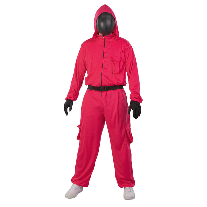 Kostüm Overall rot für Männer und Frauen, mit Kapuze, Handschuhen, Gürtel und Maske, Größe XL