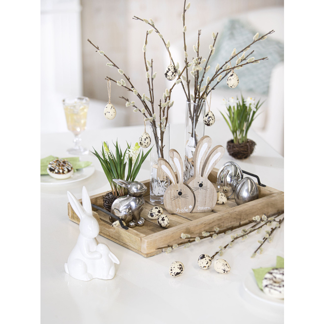Osterei lieben! Dieses ist nämlich genau das Richtige, um stylische Akzente in der Inneneinrichtung zu setzen. Es besteht aus glänzendem Keramik, ist in zwei verschiedenen Größen erhältlich und vor allem dank dem edlen Silber ein echter Hingucker, welchem ganz sicher niemand widerstehen wird. Also schnappt euch das hinreißende Ei und erlebt grenzenlosen Dekospaß!